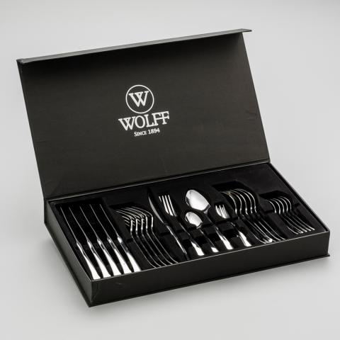 Faqueiro em Inox da Wolff com alto padrão de acabamento e design. As facas possuem corte perfeito, facilitando sua utilização em diversas ocasiões. Ótima opção para usar em recepções, no seu dia a dia ou presentear.